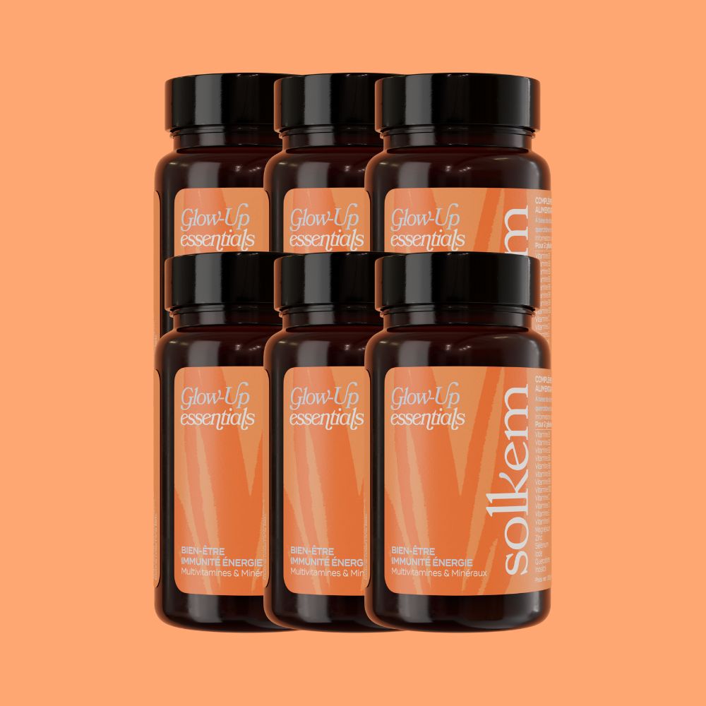 Liste complète des ingrédients : bisglycinate de magnésium, agent d'enrobage : hydroxypropyl methylcellulose, inositol, acide ascorbique (vitamine C), poudre de caroube, bisglycinate de zinc, ménaquinone (vitamine K2), nicotinamide (vitamine B3), succinate de tocophérol (vitamine E), cholécalciférol (vitamine D), pantothéonate de calcium (vitamine B5), sélénométhionine, chlorhydrate de pyridoxine (vitamine B6), riboflavine (vitamine B2), chlorhydrate de thiamine (vitamine B1), methylcobalamine (vitamine B12), acide folique (vitamine B9), iodure de potassium, biotine (vitamine B8).